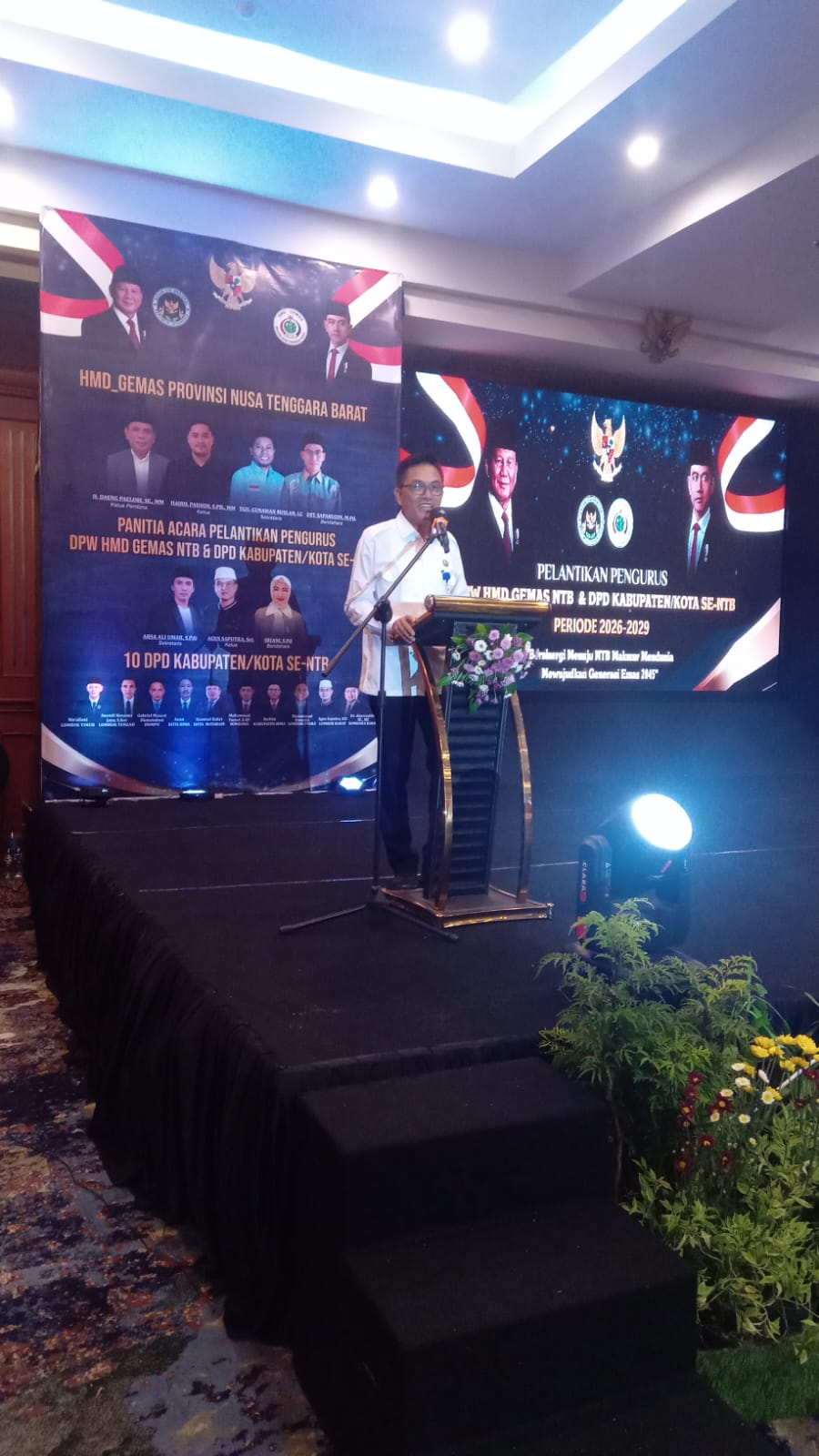 Pada hari Rabu, 11/02/2026 Gubernur NTB di wakili oleh Karo pemerintahan dan otda prov NTB, menghadiri dan memberikan sambutan pada acara pelantikan pengurus DPW HMD GERMAS Prov NTB dan DPD HMD GERMAS se kab kota se provinsi NTB periode 2026-2029 di Lombok Raya hotel Mataram, hadir pada kegiatan tsb Staf khusus menko bidang pangan RI,ketum DPP HMD GERMAS Prof.DR Yadiman dan sekjen ,bendum DPP HMD GERMAS, Forkopimda prov, para pengusaha SPPG MBG dan seluruh pengurus serta tamu undangan,
